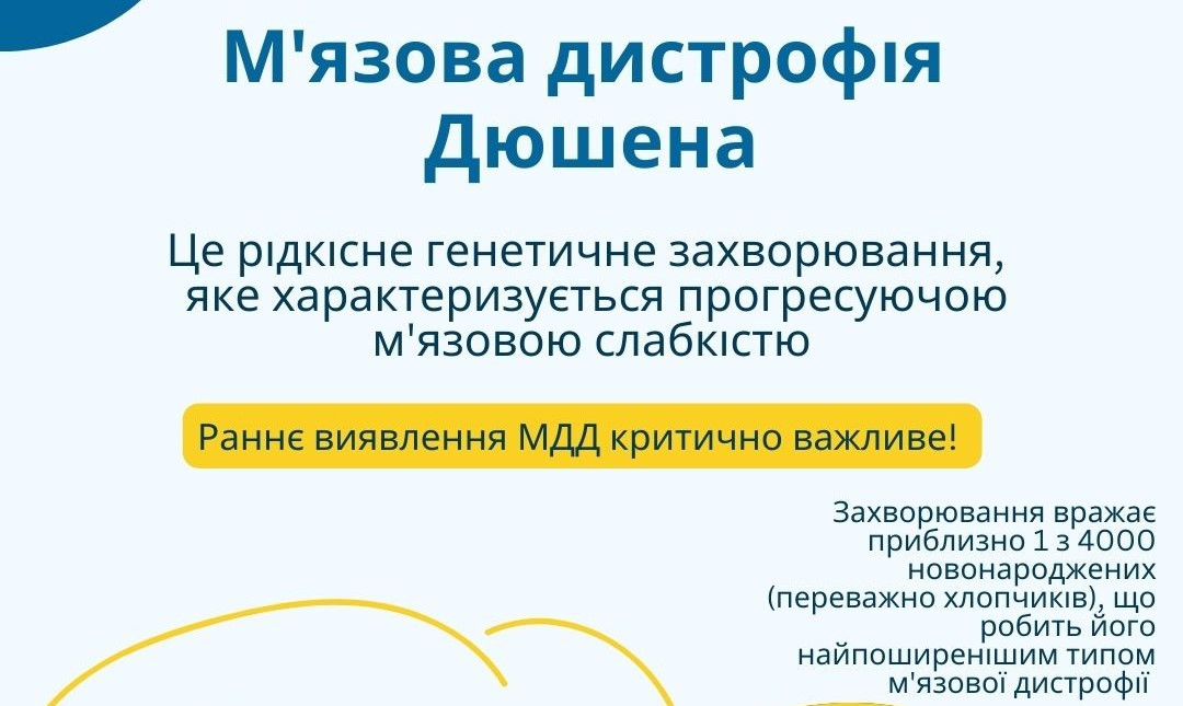 М'язова дистрофія Дюшена (МДД) — це рідкісне генетичне захворювання, пов'язане з X-хромосомою, яке характеризується прогресуючою м'язовою слабкістю. Небезпека полягає втому, що в кінцевому підсумку воно може призвести до повної втрати здатності рухатися та смерті хворого.