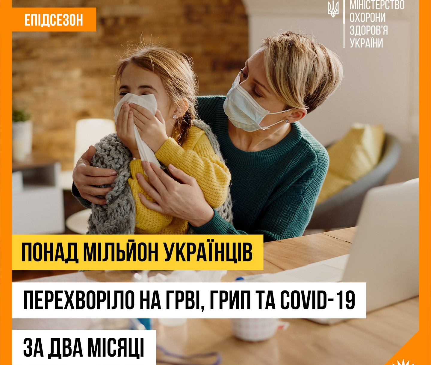 В останній тиждень листопада медики зафіксували 121 416 випадків захворювання на ГРВІ, грип та COVID-19 в Україні, із них 71 878 — серед дітей віком до 17 років.