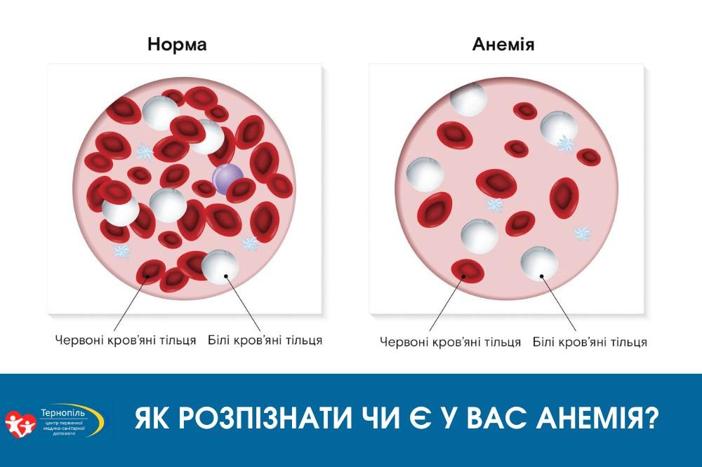 Анемія є станом, при якому в організмі відсутня достатня кількість здорових червоних кров'яних клітин або гемоглобіну.