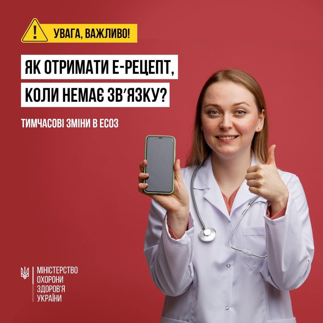 Тимчасово на період відновлення мобільного звʼязку в ЕСОЗ будуть внесені зміни щодо формування електронного рецепта, повідомляють в Міністерстві охорони здоров’я України.