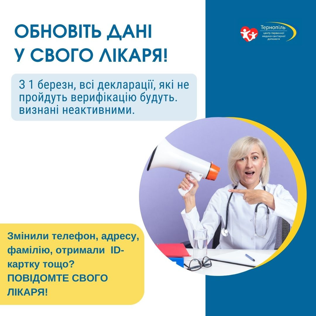 З 1 березня 2025 року декларації, які не пройдуть перевірку, будуть визнані неактивними. Це означає, що пацієнти втратять доступ до гарантованих державою медичних послуг.