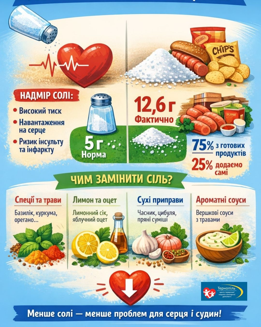 Сіль - це спеція, яка підкреслює смак і необхідна нашому організму. Але у надлишку вона перестає бути помічником і стає ворогом для здоров’я.