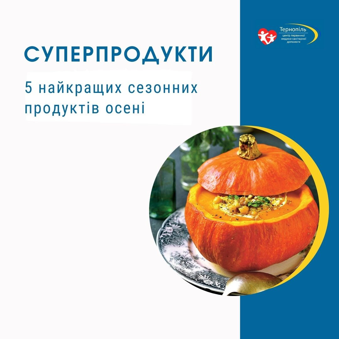 Осіння пора – чудова можливість зміцнити здоров'я за допомогою сезонних продуктів. Пропонуємо вам ознайомитись з п'ятьма суперпродуктами цієї пори року, які принесуть вашому організму максимум користі.