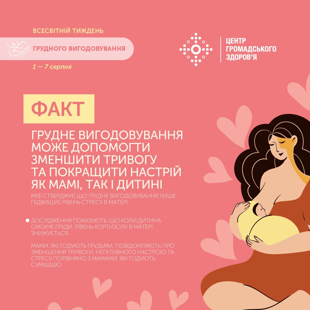 ФАКТ: Навпаки, саме завдяки протизапальній дії та зниженню рівня кортизолу грудне вигодовування може допомогти зменшити тривогу та покращити настрій як матері, так і дитини.