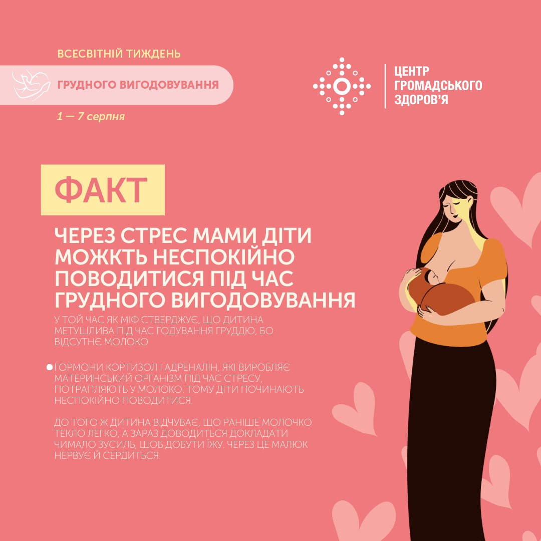 Однак насправді ця тема обросла численними стереотипами та міфами, які часто не мають наукового підґрунтя. Центр громадського здоров'я України спростовує найпоширеніші помилкові уявлення про вплив стресу на грудне вигодовування: