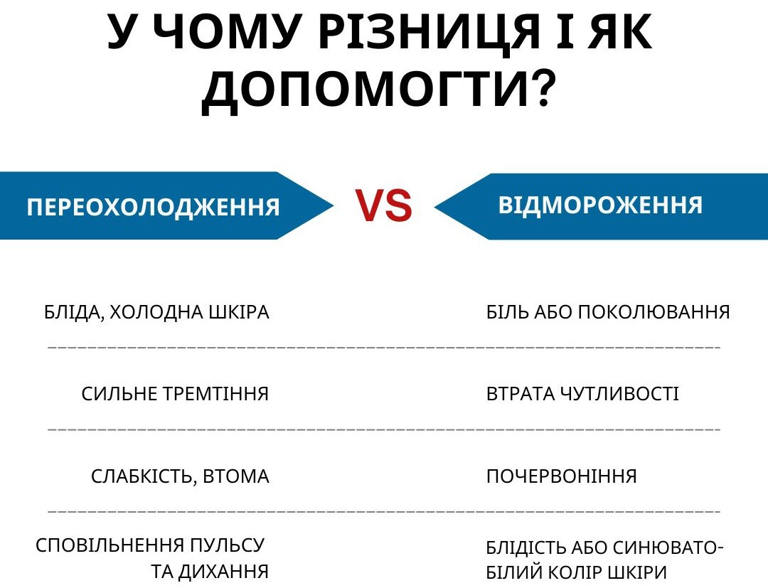 Холод може бути небезпечним для життя. Важливо вчасно розрізнити переохолодження та відмороження й правильно надати першу допомогу.