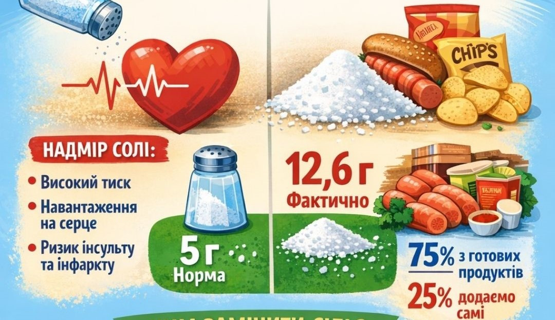 Сіль - це спеція, яка підкреслює смак і необхідна нашому організму. Але у надлишку вона перестає бути помічником і стає ворогом для здоров’я.
