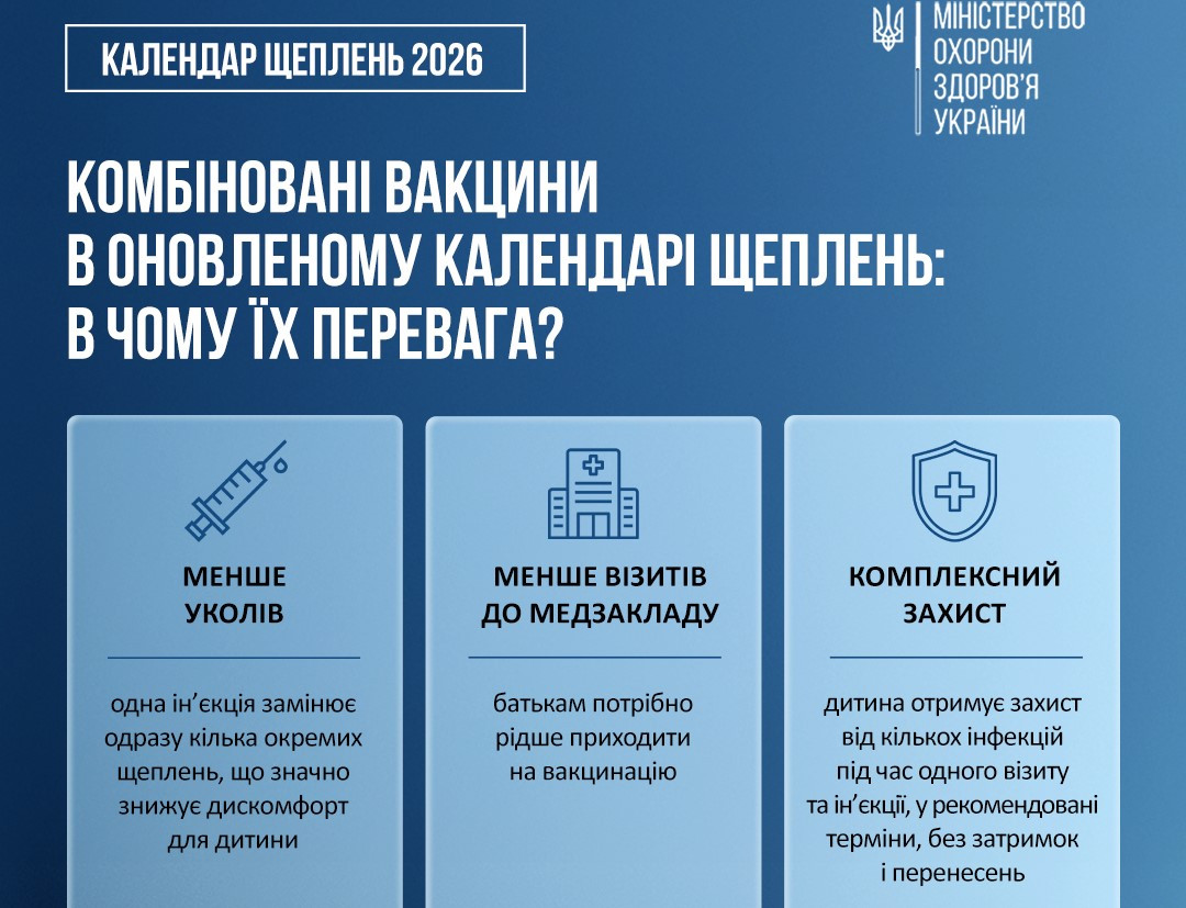 З 1 січня 2026 року в Україні запрацює оновлений Календар профілактичних щеплень, у якому передбачене ширше використання сучасних комбінованих вакцин.
