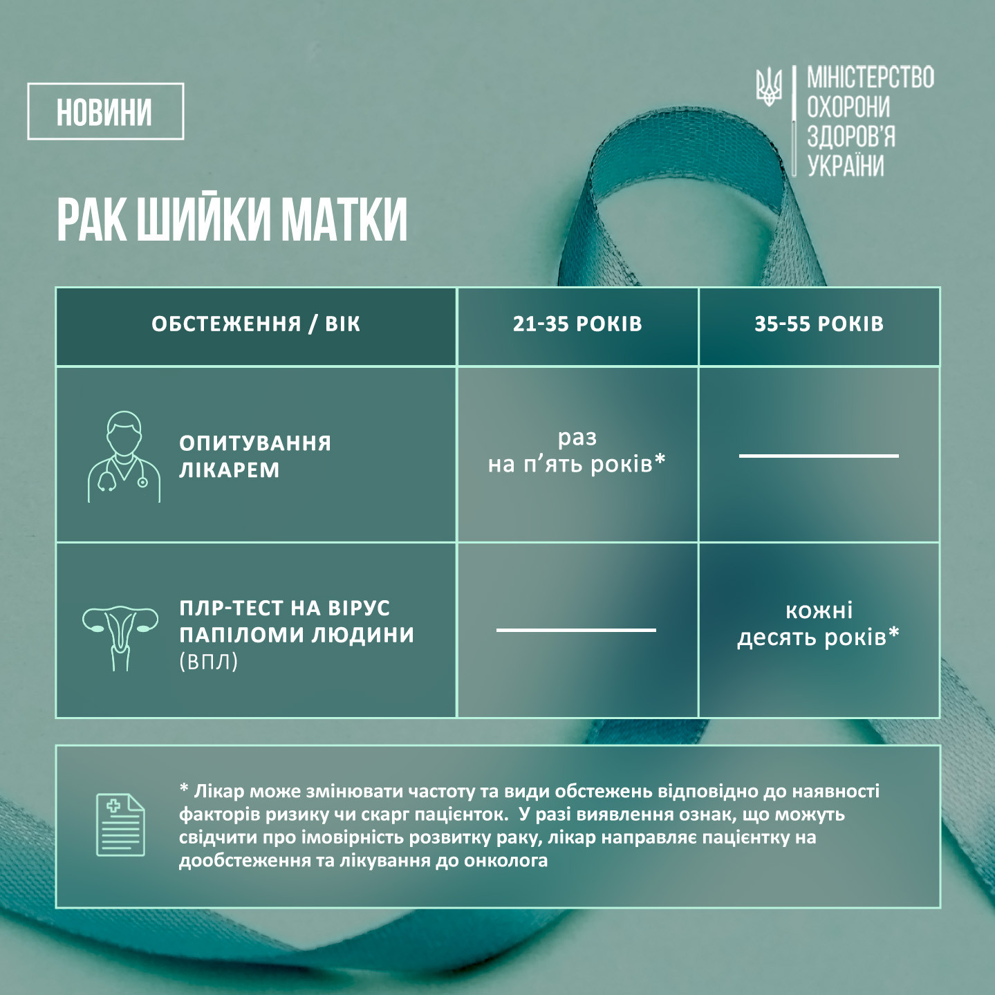 1 січня 2025 року в Україні набув чинності наказ про порядок скринінгу та ранньої діагностики деяких видів раку, а також моніторингу стану здоров’я пацієнтів з груп ризику, зокрема: