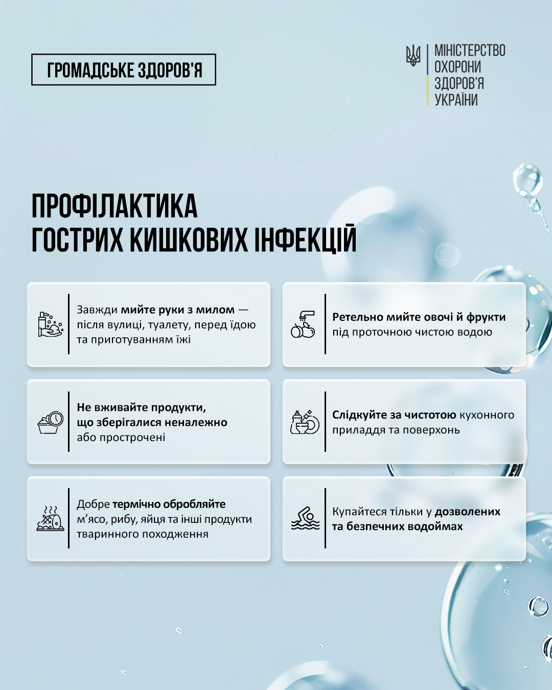 За даними Міністерства охорони здоров'я України з початку 2025 року в Україні зафіксовано 38 спалахів гострих кишкових інфекцій (ГКІ). Зареєстровано 24 810 випадків таких захворювань.