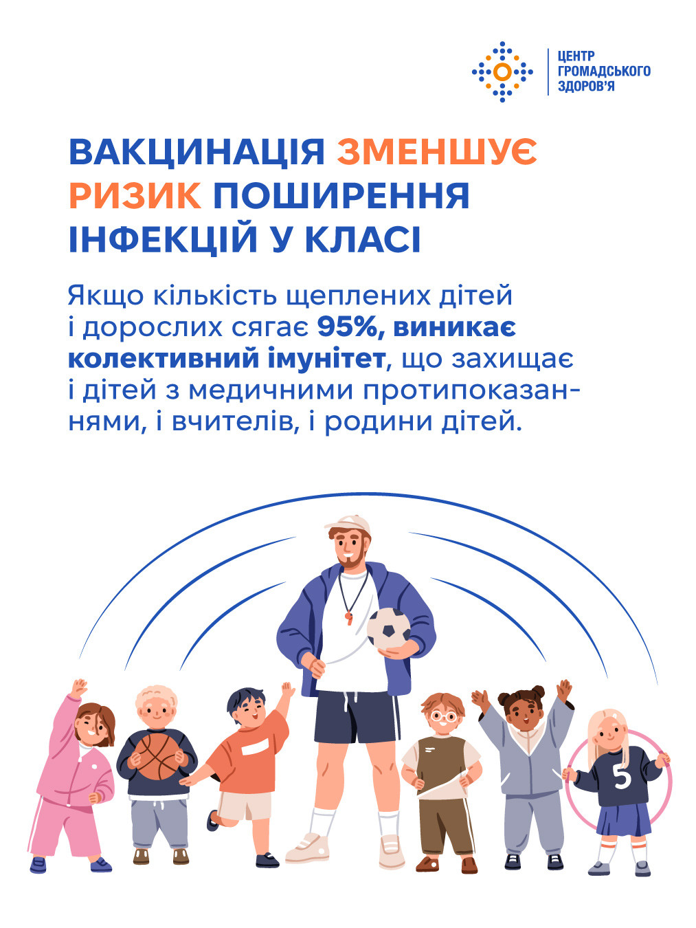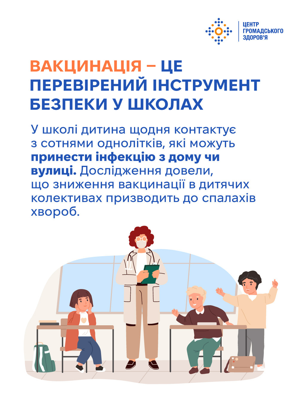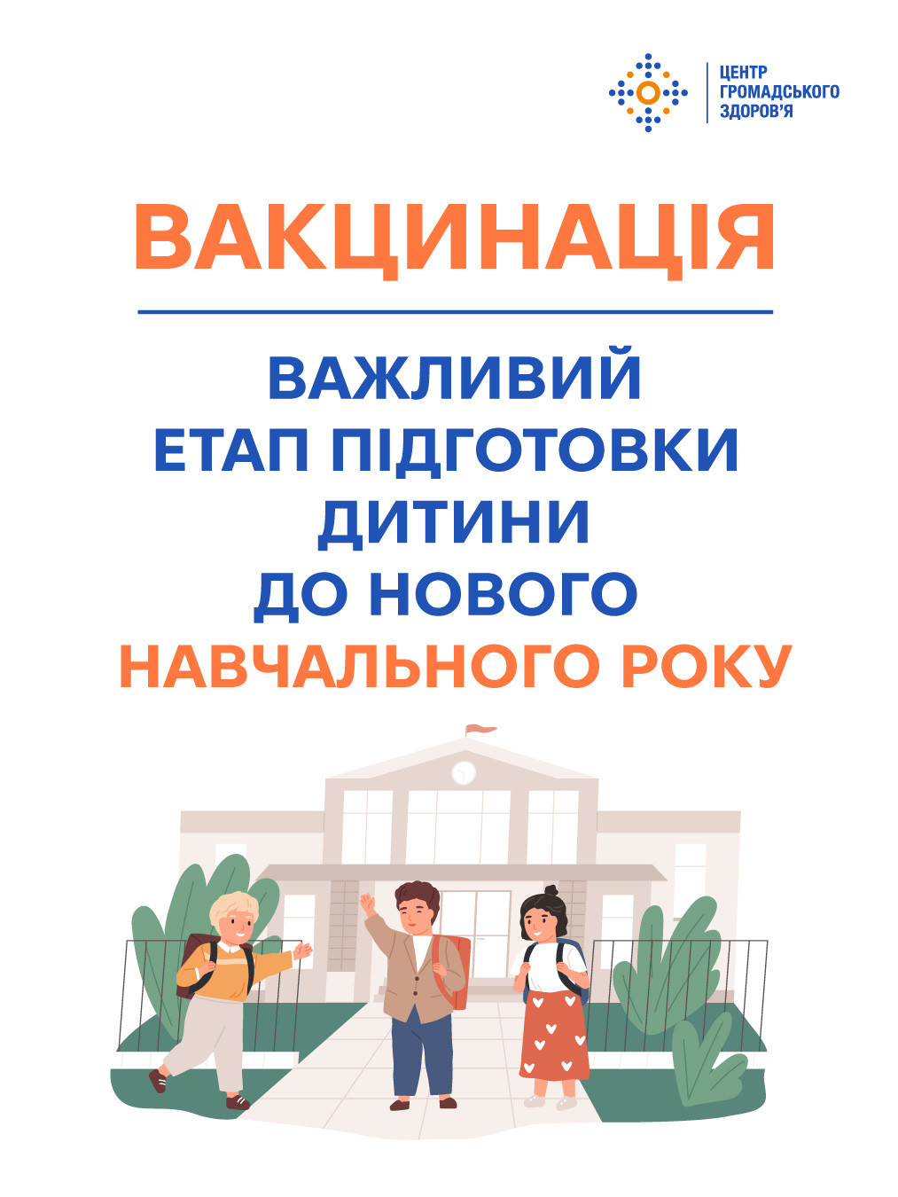Центр громадського здоров'я України нагадує про важливість своєчасної вакцинації перед початком навчального року.