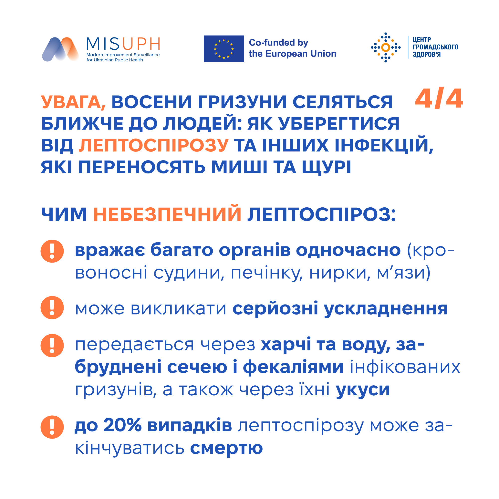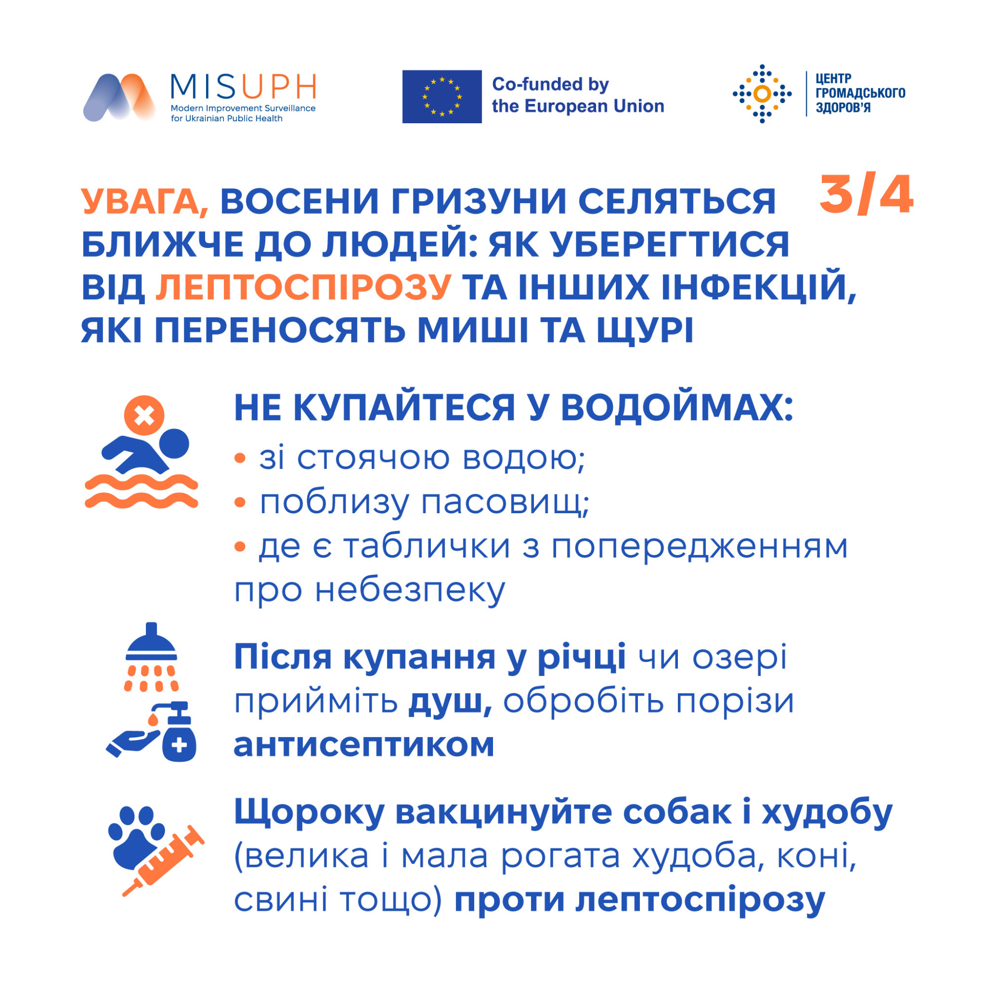 Центр громадського здоров’я України розробив детальну інфографіку про лептоспіроз з усіма необхідними рекомендаціями щодо захворювання. Збережіть собі цей допис та поширюйте серед друзів, можливо саме ці поради врятують когось від інфікування.