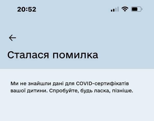 Якщо користувач отримує статус "Не має даних про вас" після запиту на COVID-сертифікат |