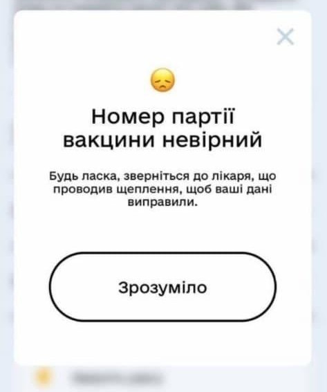 "Дія" після формування запиту повідомила “Номер партії вакцини помилковий"
