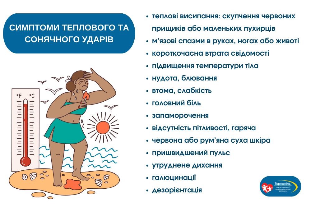 Останнім часом літні спекотні дні супроводжуються значним підвищенням температури. Все більше людей стали скаржитись на появу різних симптомів, таких, як запаморочення, слабкість, сонливість, головний біль. Такий стан може бути характерним симптомом сонячного або теплового удару.