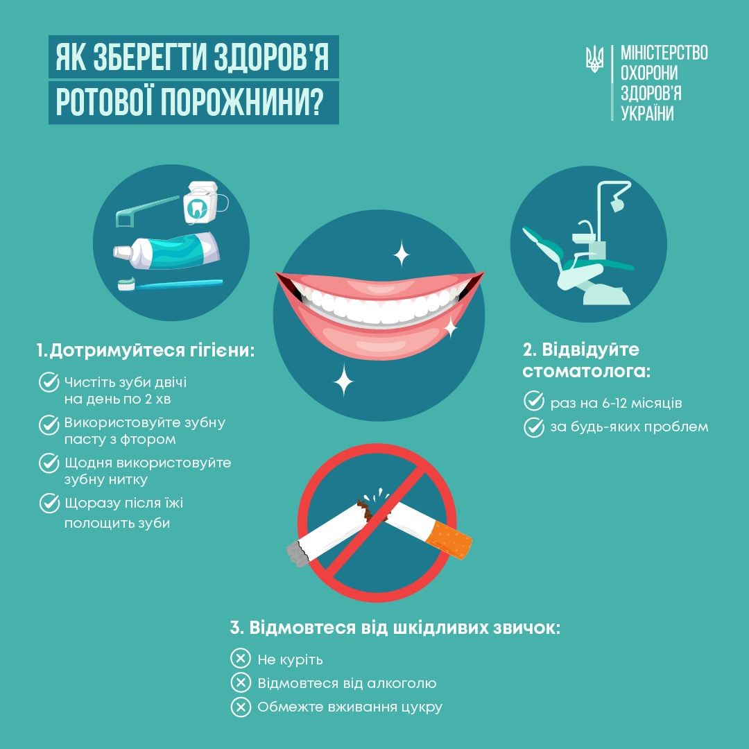 20 березня відзначають День здоровʼя ротової порожнини. Здоров'я наших зубів і ясен важливо не тільки для красивої усмішки, але для загального стану організму. Адже бактерії, які викликають карієс та запалення ясен, можуть призвести до більш серйозних проблем зі здоров’ям, як-от захворювання серцево-судинної системи, респіраторні хвороби, ревматоїдний артрит, діабет.