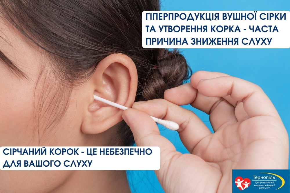 Гіперпродукція вушної сірки та утворення корка - часта причина зниження слуху.